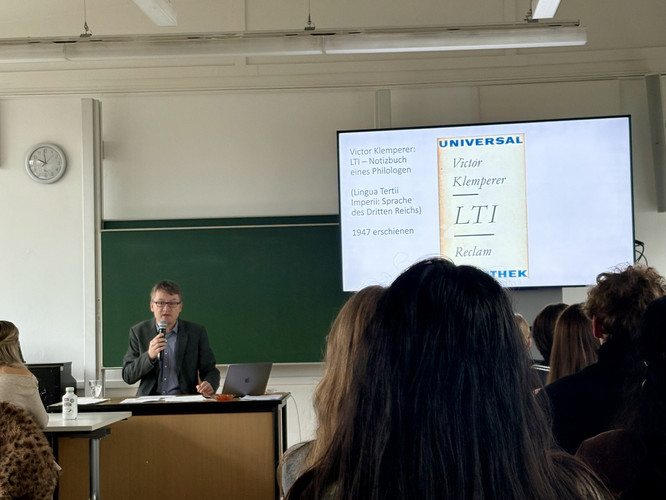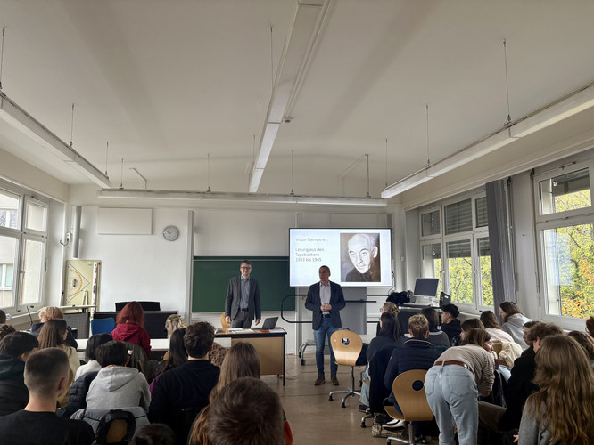 Am 10.11.2025 erlebten die Schülerinnen und Schüler der Leistungskurse Geschichte und Englisch der Jgst. 11 eine Lesung aus den Tagebüchern von Victor Klemperer durch Dr. Renatus Deckert.
